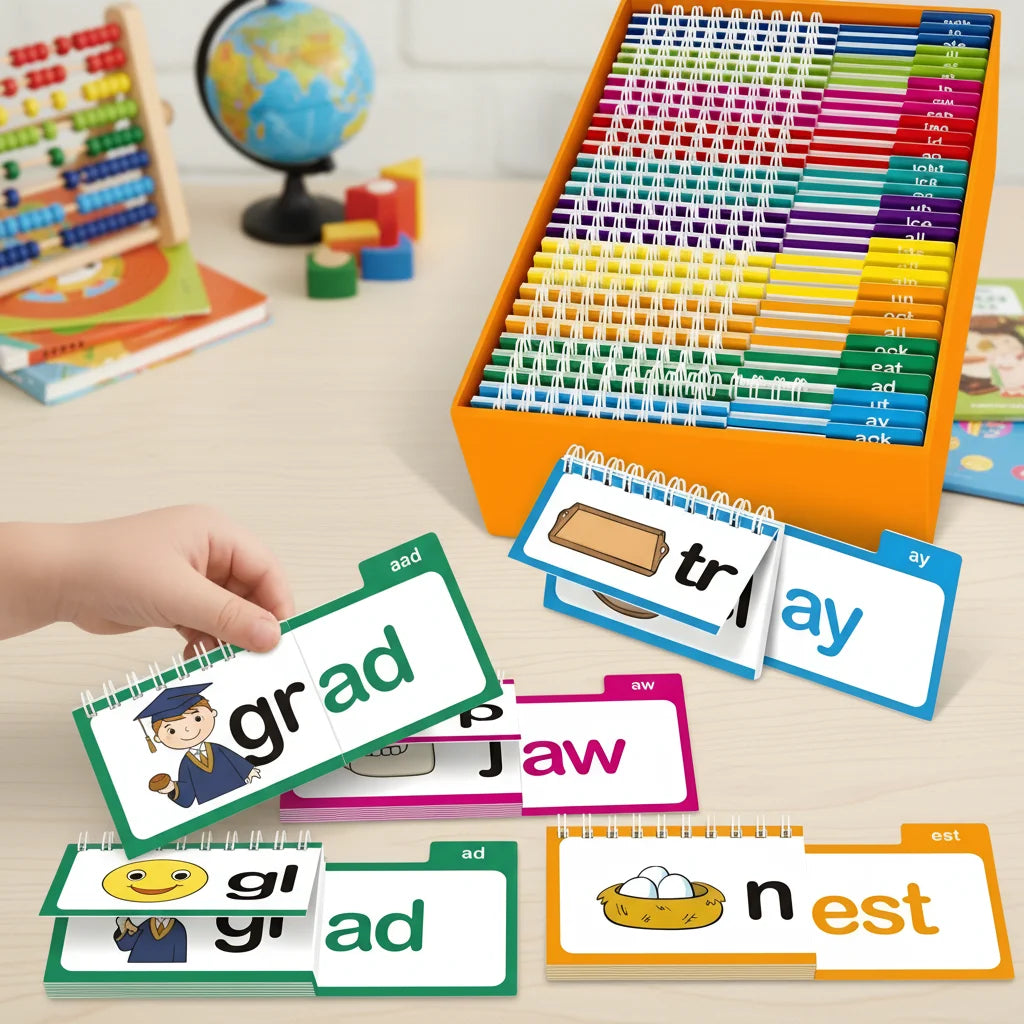 Our unique flip book design allows for hands-on word building, transforming abstract phonics into an engaging, interactive game. This method significantly boosts retention and makes learning exciting!